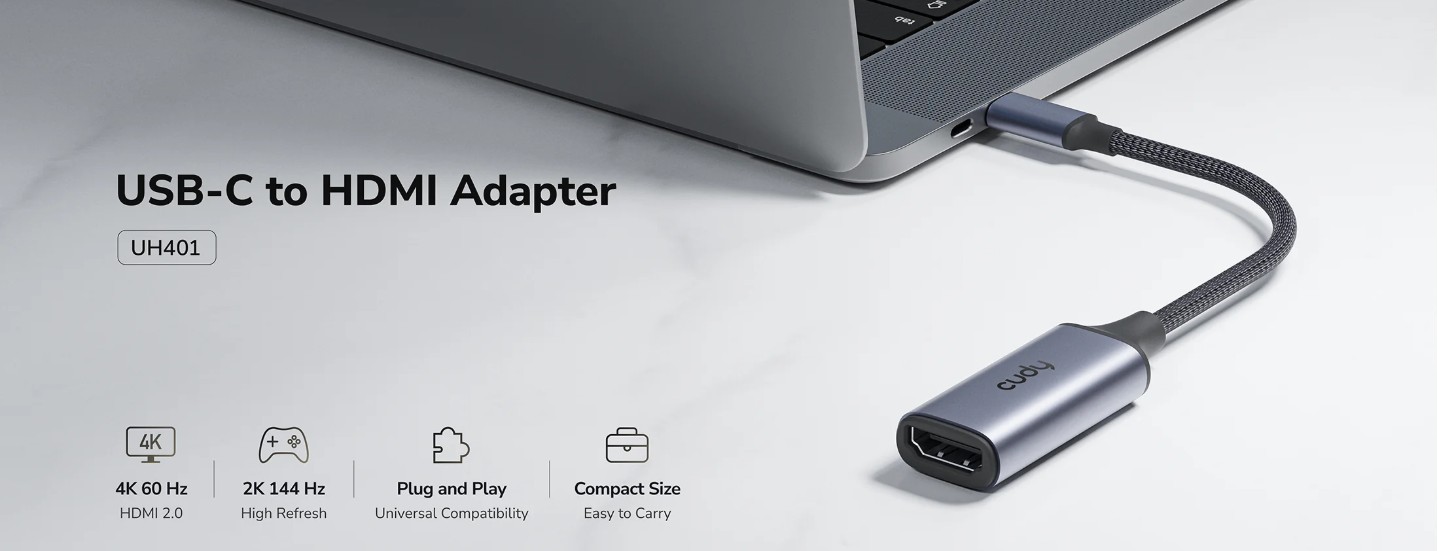 Cudy UH401 to elegancki i wytrzymały adapter, który przesyła obraz w najwyższej jakości 4K przy 60 Hz.