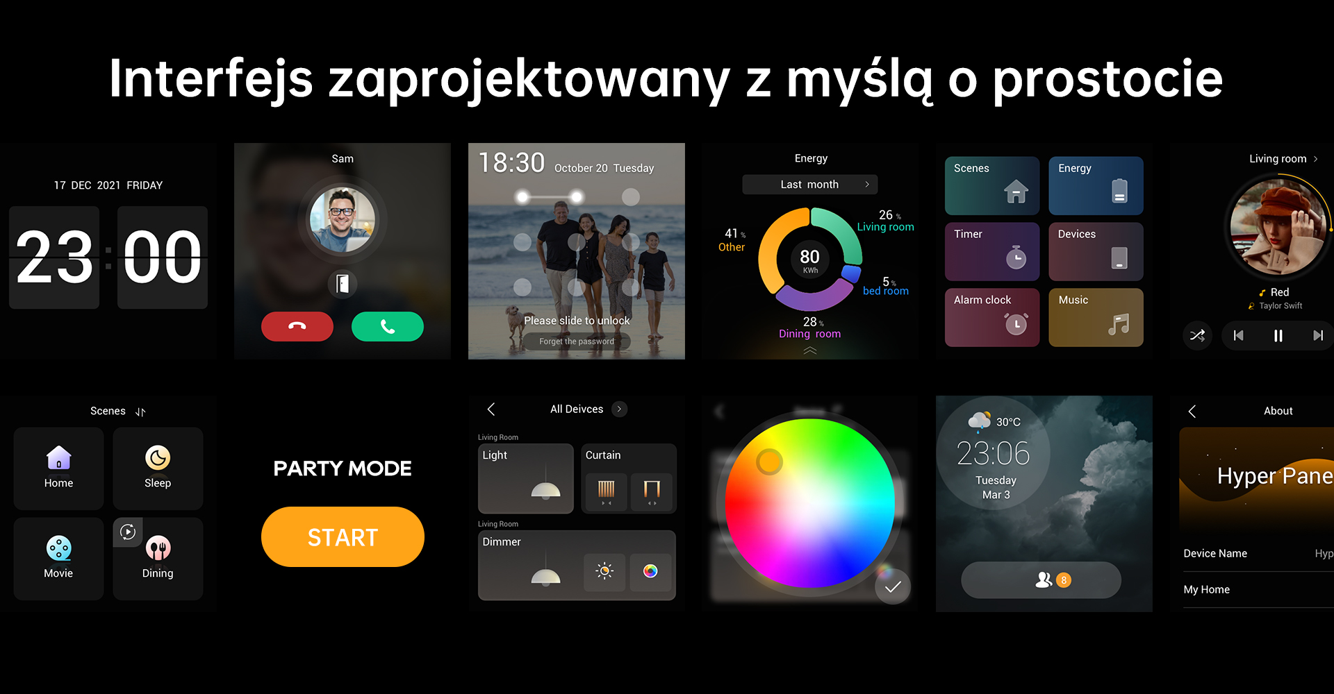 Każdy element interfejsu HyPanel – od kolorów po interakcje – został zaprojektowany tak, by korzystanie z systemu było intuicyjne dla każdego domownika, niezależnie od wieku.