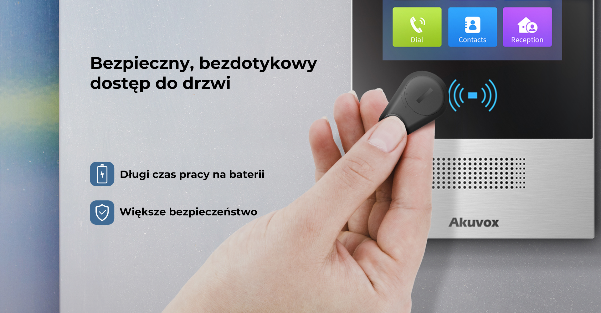 - Współpracuje z Panelami Akuvox z BLE