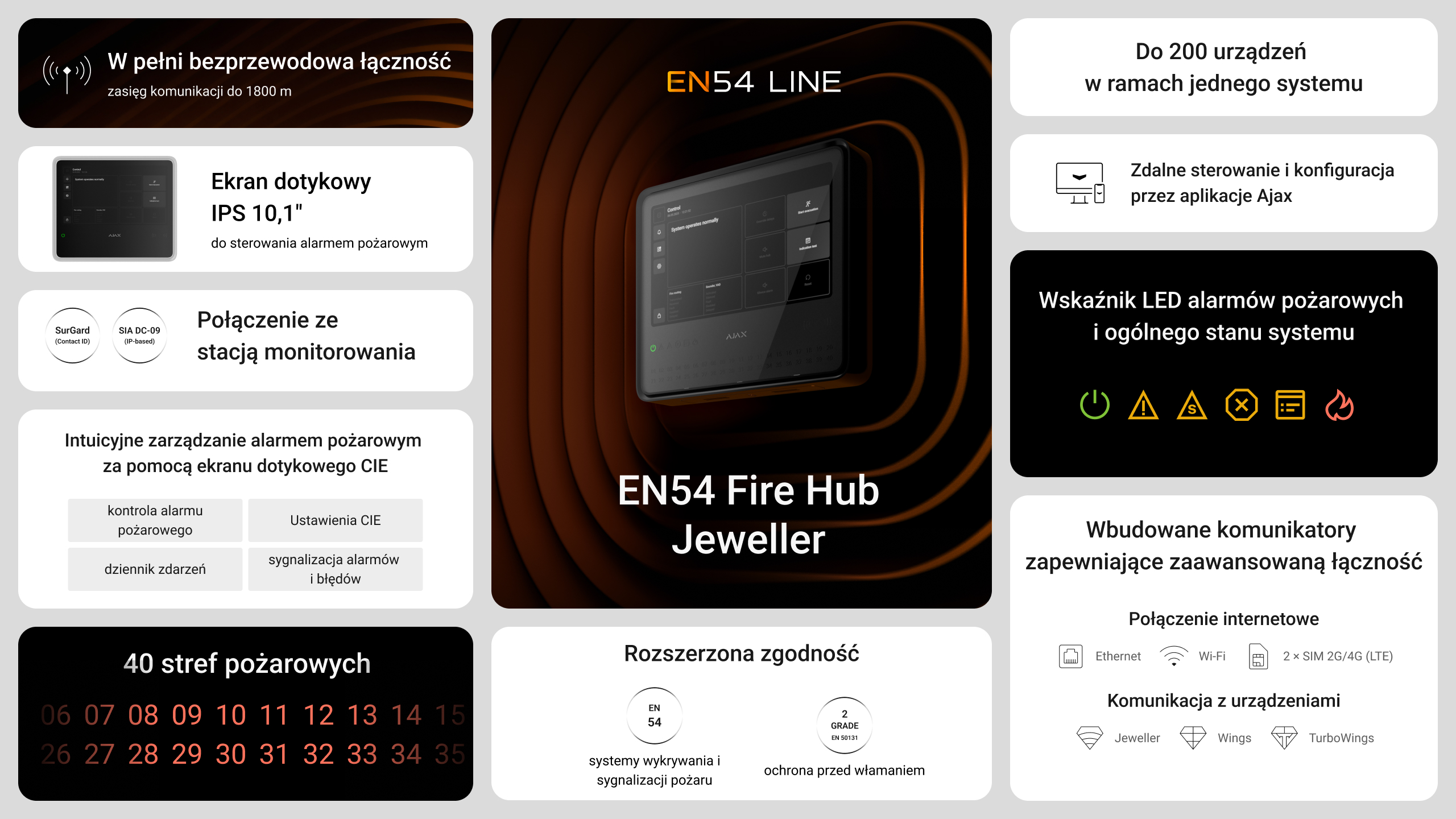 Bezprzewodowy panel sterowania alarmem pożarowym (CIE), obsługujący urządzenia ochrony przed włamaniem