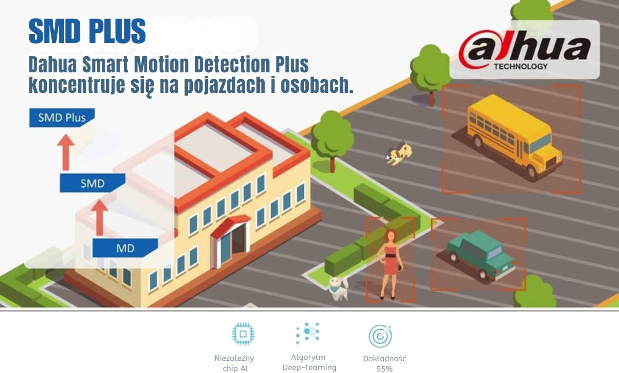 Technologia SMD Plus (Smart Motion Detection Plus) firmy Dahua to zaawansowane rozwiązanie w dziedzinie monitoringu wizyjnego, które umożliwia: