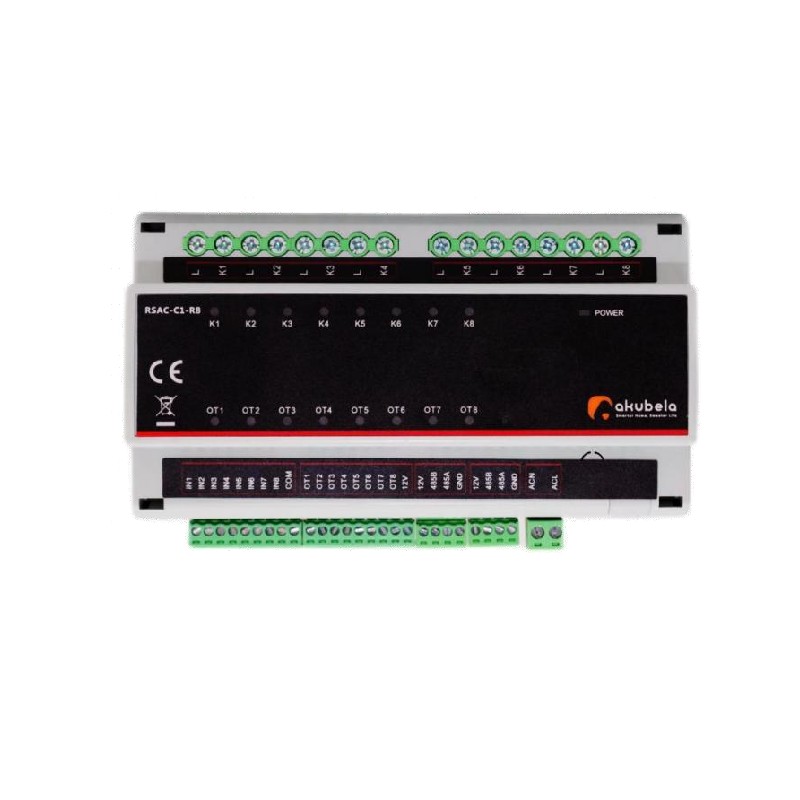 Moduł RSAC-C1-R8 to inteligentne rozwiązanie, które pozwala w prosty sposób sterować wieloma urządzeniami jednocześnie. Dzięki niemu z łatwością zintegrujesz osiem kanałów wyjściowych z systemem Akubela lub Akuvox, co umożliwi ci zdalne sterowanie oświetleniem, bramami, roletami i innymi urządzeniami bezpośrednio z aplikacji mobilnej BelaHome / SmartPlus lub HyPanela / Monitora. Moduł jest zasilany napięciem DC 12 V i AC 230 V i został zaprojektowany z myślą o montażu na szynie DIN, dzięki czemu idealnie nadaje się do instalacji w szafach sterowniczych w domach i mieszkaniach. Proste i niezawodne sterowanie w zasięgu ręki, bez zbędnych komplikacji.