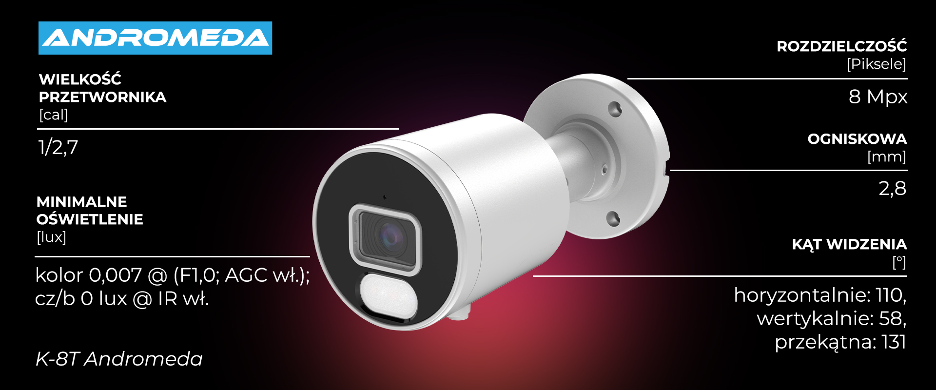 K-8T Andromeda Kamera IP Zewnętrzna 8Mpx PoE Detekcja Ruchu IR Mikrofon Funkcje AI