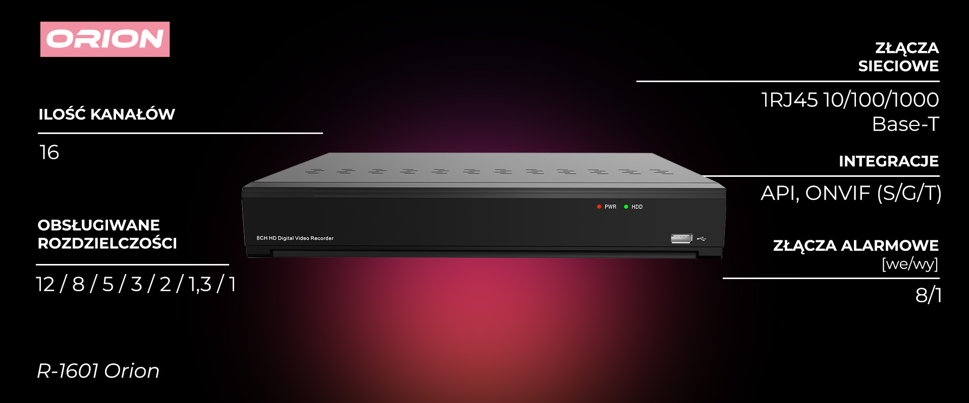 R-1601 Orion Rejestrator IP 16 Kanałowy do 12Mpx Detekcja Ruchu AI