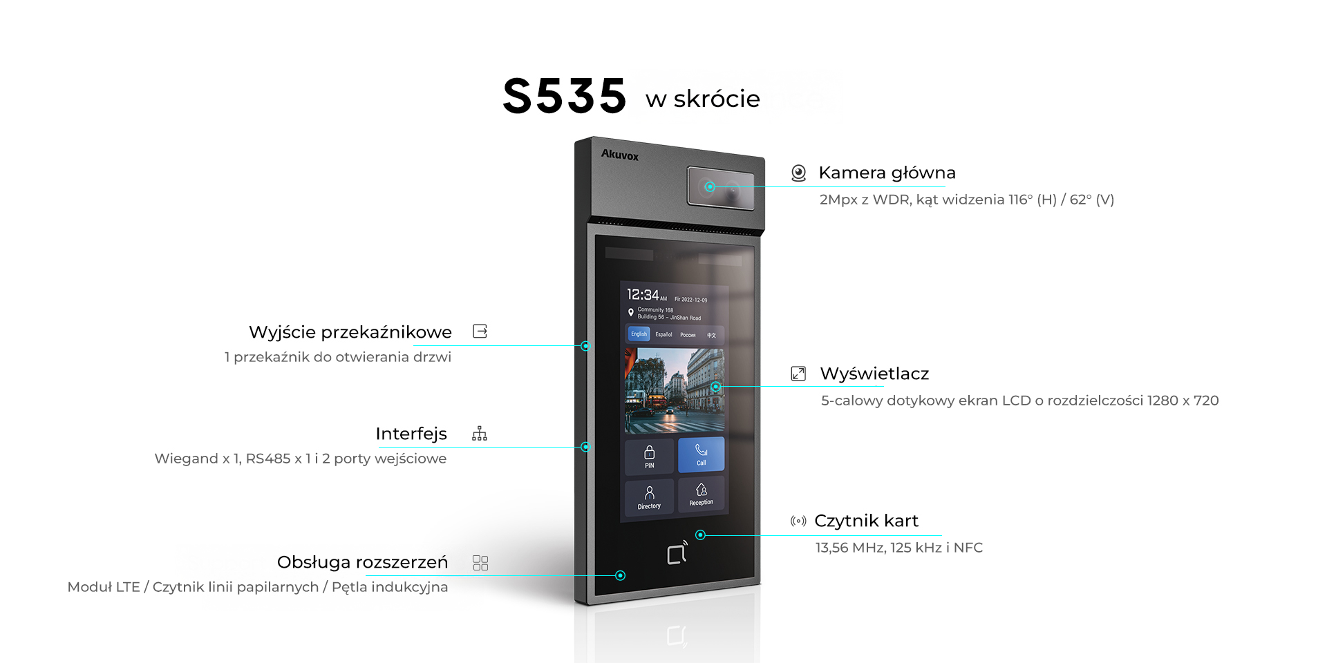 Panel Dotykowy Zewnętrzny IP S535 5" LCD 2Mpx Linux PoE Akuvox