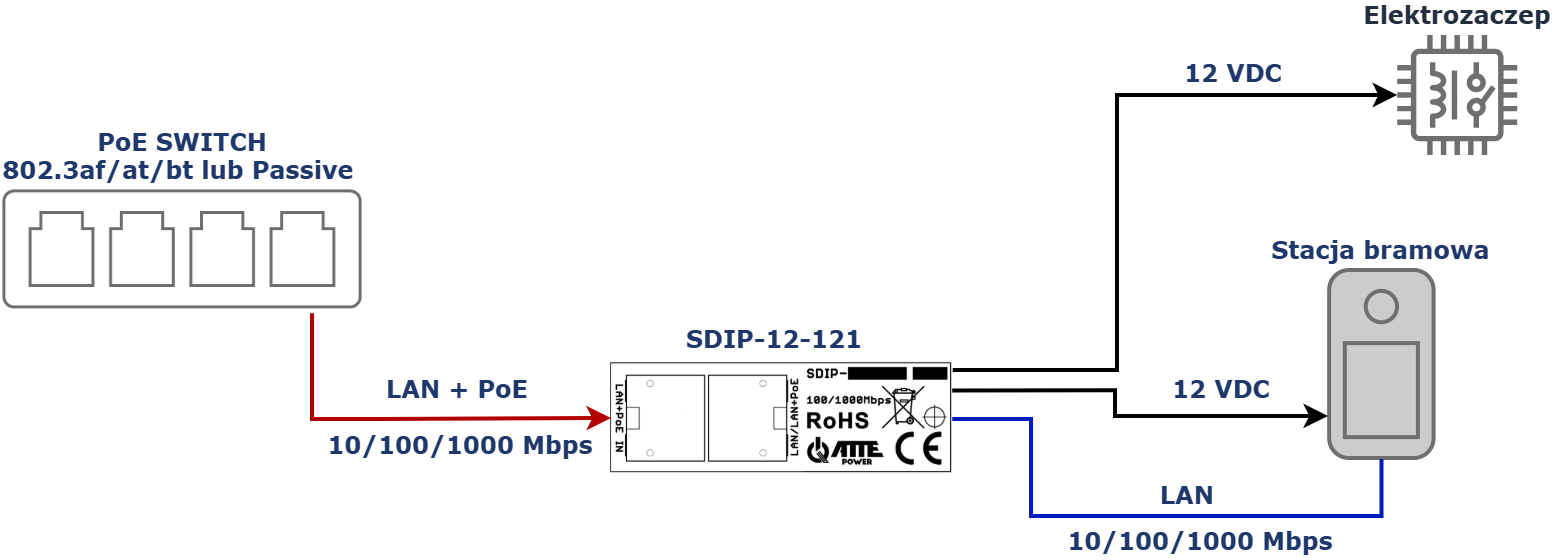 SDIP-12-121 Adapter PoE Gigabit obniżający napięcie do 12V