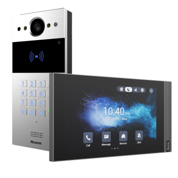 Wideodomofon, który umożliwia identyfikację wizualną i głosową wchodzących osób. Posiada 2 wbudowane przekaźniki pozwalające na kontrolę 2 przejść (dwoje drzwi, furtka i brama, itp.), wyposażony w czytnik kart RF Mifare i Unique (13,56MHZ & 125KHZ).