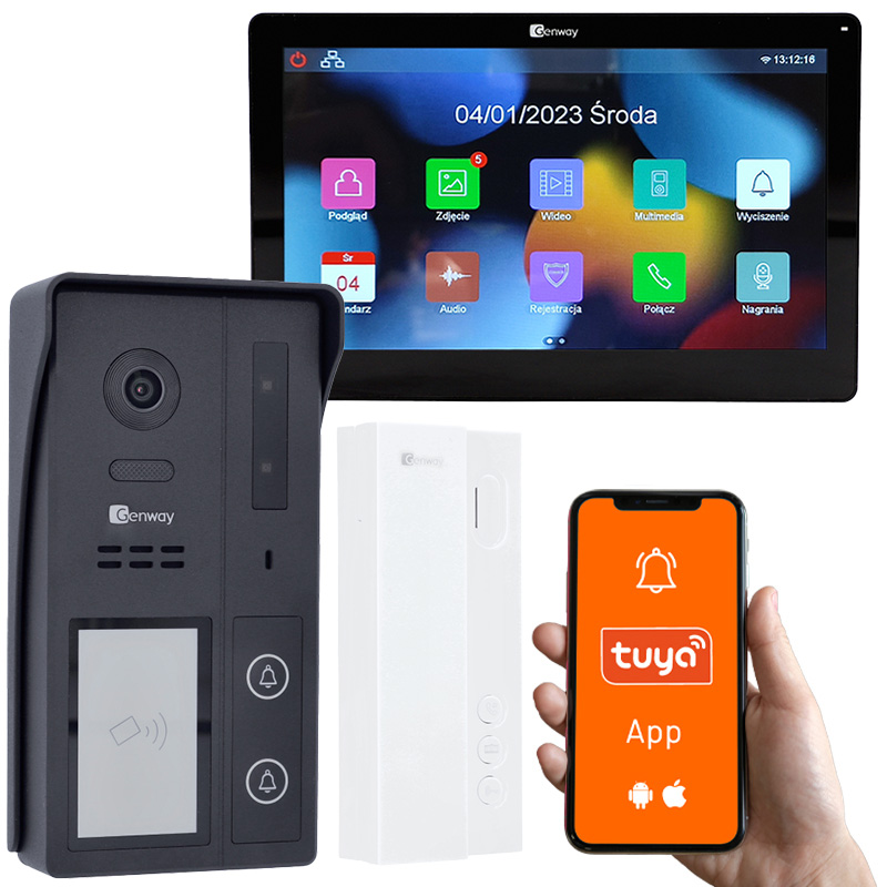 Zestaw wideodomofonowy Genway 2 żyłowy z monitorem dotykowym 7" WiFi i Tuya i dodatkową słuchawką